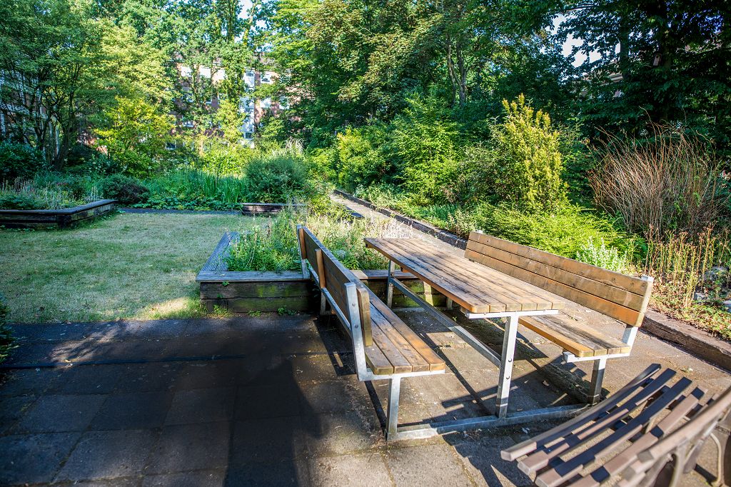 Der schöne Garten hinter der Schule wird gemeinsam gestaltet und gepflegt.